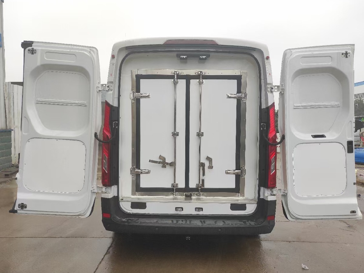 (2)廂板材質:內外壁板選用國內優(yōu)質玻璃鋼(不吸光、隔熱性好、硬度強、抗氧化);中間保溫層為XPS擠塑聚笨板;廂體厚度8CM。地板采用鋁花紋板,門邊條采用迷宮式橡膠密封條。