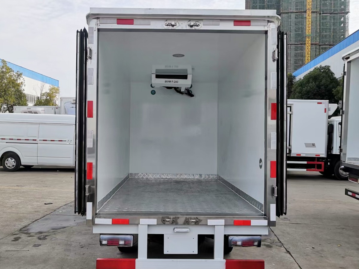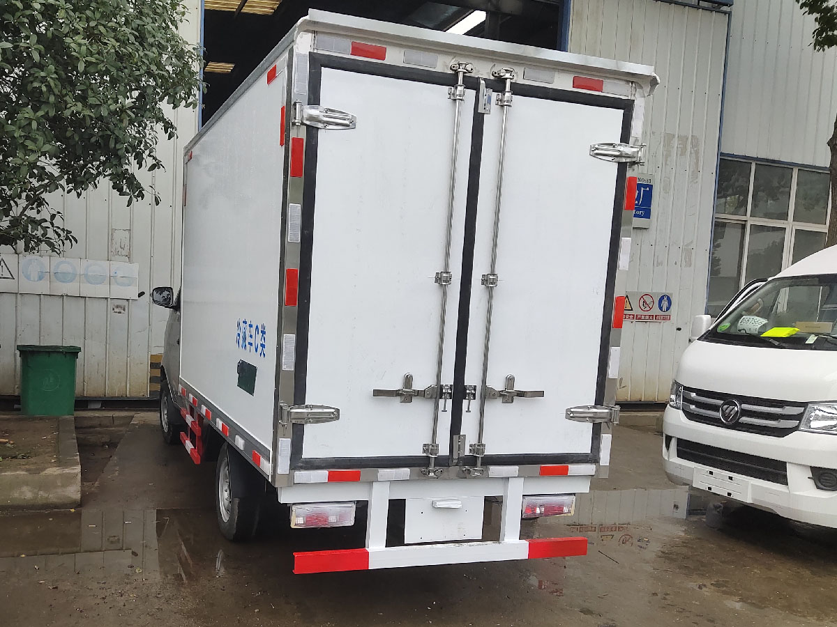 (2)廂板材質:內外壁板選用國內優(yōu)質玻璃鋼(不吸光、隔熱性好、硬度強、抗氧化);中間保溫層為XPS擠塑聚笨板;廂體厚度8CM。地板采用鋁花紋板,門邊條采用迷宮式橡膠密封條。