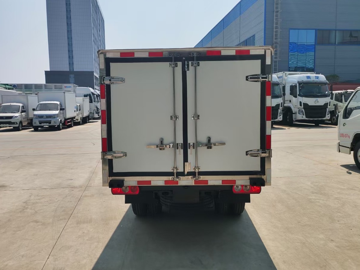 (2)廂板材質(zhì):內(nèi)外壁板選用國(guó)內(nèi)優(yōu)質(zhì)玻璃鋼(不吸光、隔熱性好、硬度強(qiáng)、抗氧化);中間保溫層為XPS擠塑聚笨板或聚氨酯;廂體厚度8CM。地板采用鋁花紋板,門(mén)邊條采用迷宮式橡膠密封條。