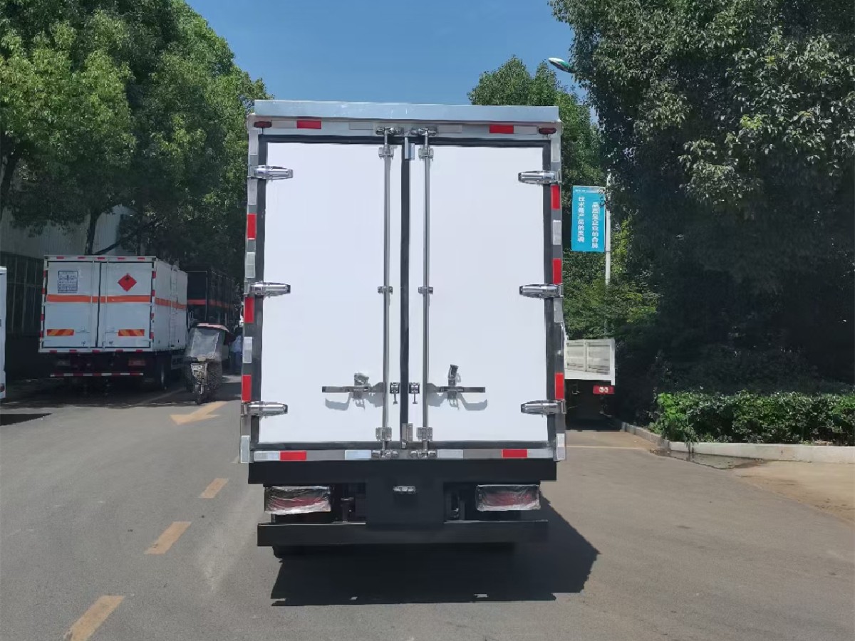 (2)廂板材質(zhì):內(nèi)外壁板選用國內(nèi)優(yōu)質(zhì)玻璃鋼(不吸光、隔熱性好、硬度強、抗氧化);中間保溫層為XPS擠塑聚笨板或聚氨酯;廂體厚度8CM。地板采用鋁花紋板,門邊條采用迷宮式橡膠密封條。