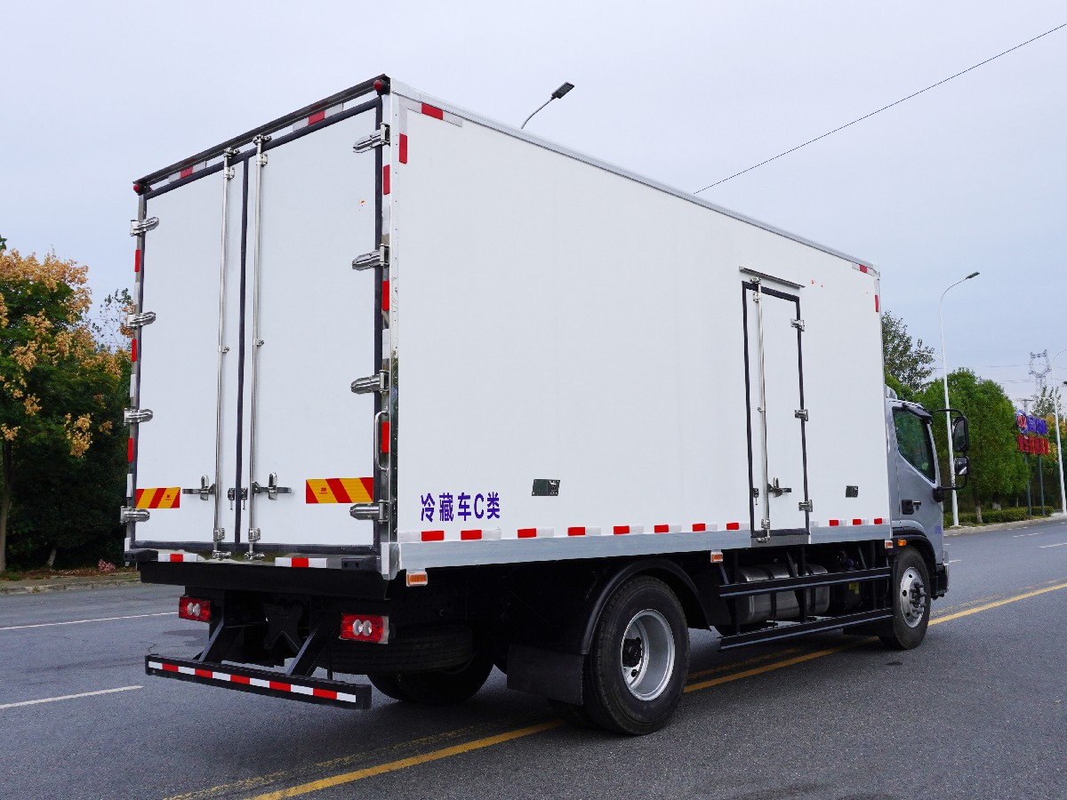 (2)廂板材質(zhì):內(nèi)外壁板選用國(guó)內(nèi)優(yōu)質(zhì)玻璃鋼(不吸光、隔熱性好、硬度強(qiáng)、抗氧化);中間保溫層為XPS擠塑聚笨板;廂體厚度8CM。地板采用鋁花紋板,門邊條采用迷宮式橡膠密封條。