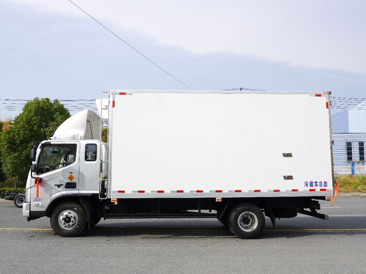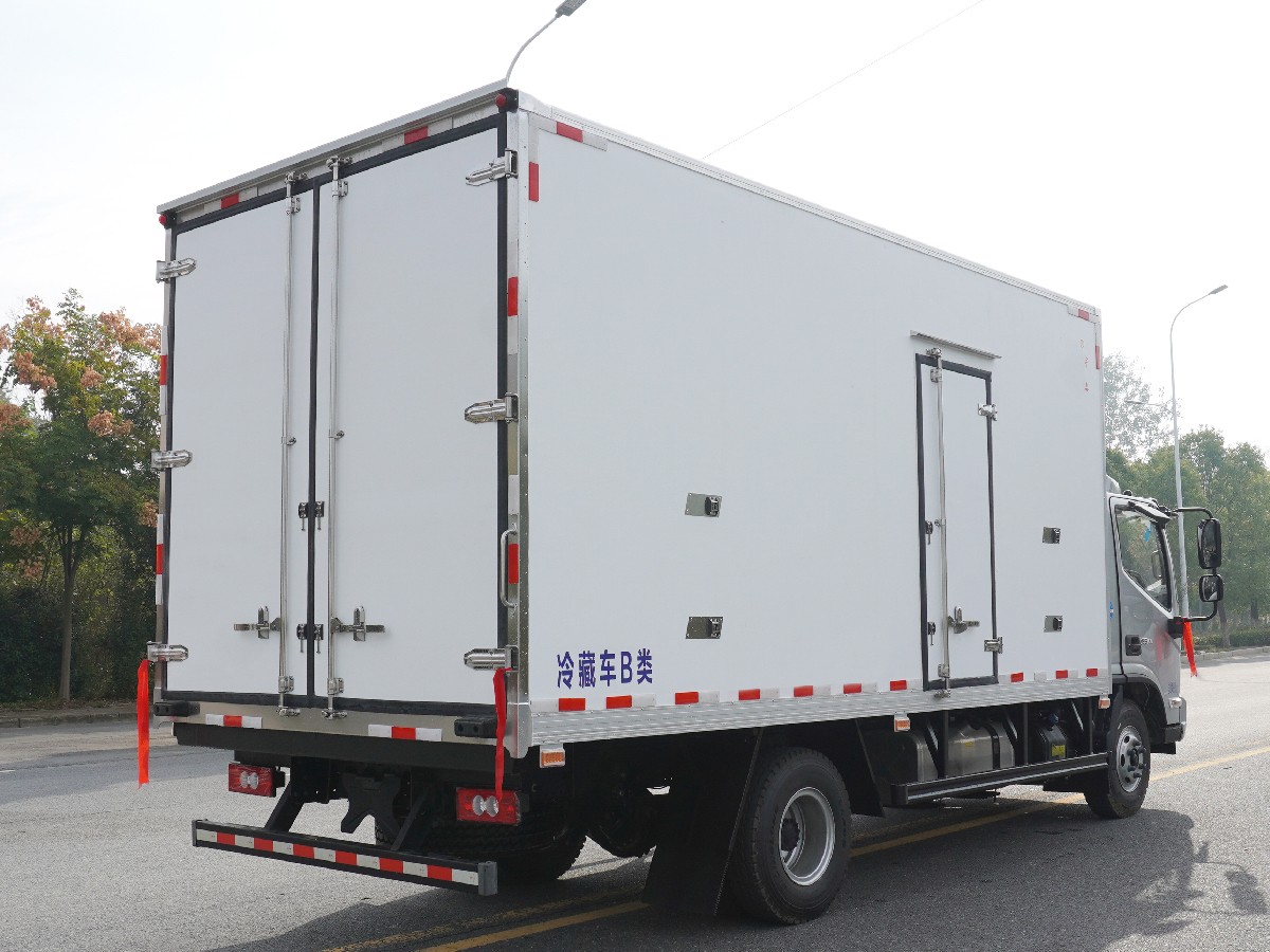 (2)廂板材質(zhì):內(nèi)外壁板選用國內(nèi)優(yōu)質(zhì)玻璃鋼(不吸光、隔熱性好、硬度強(qiáng)、抗氧化);中間保溫層為XPS擠塑聚笨板;廂體厚度8CM。地板采用鋁花紋板,門邊條采用迷宮式橡膠密封條。