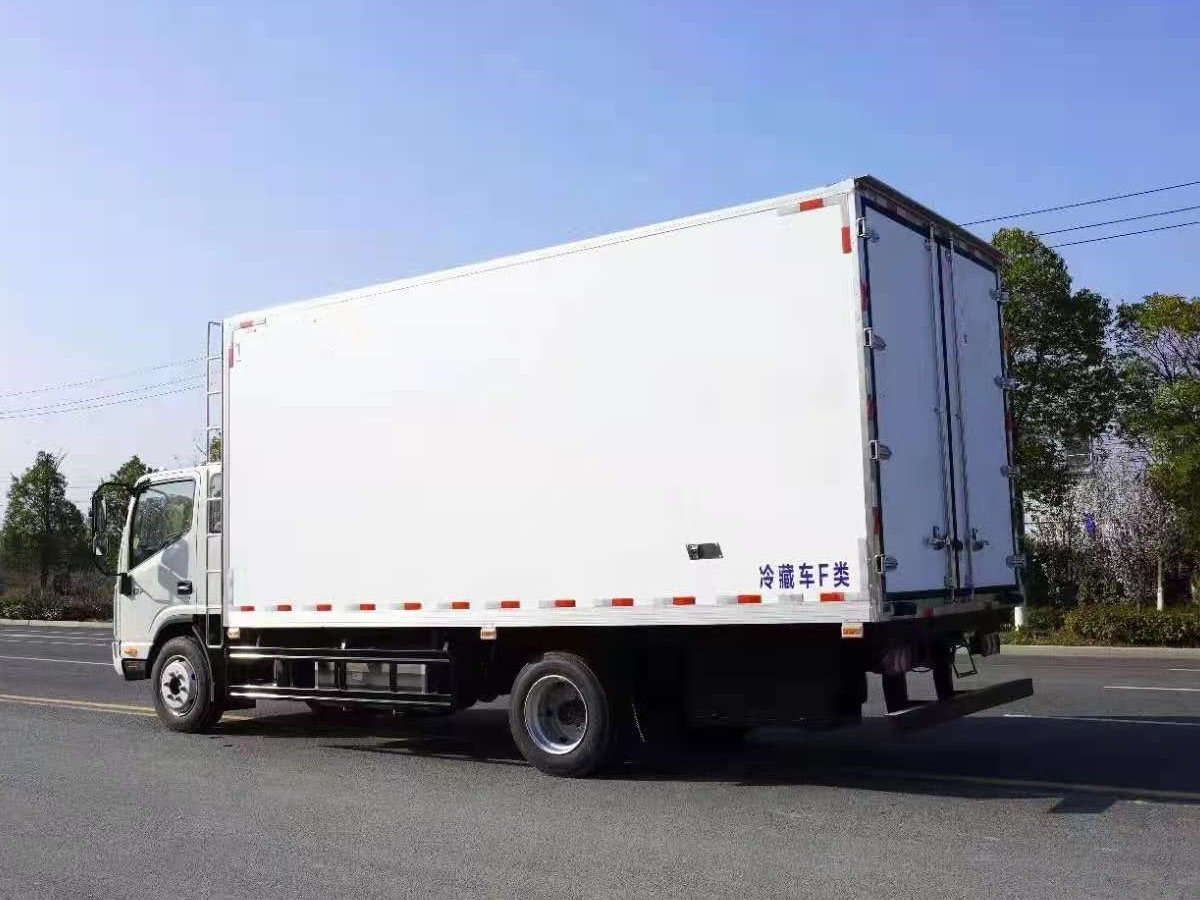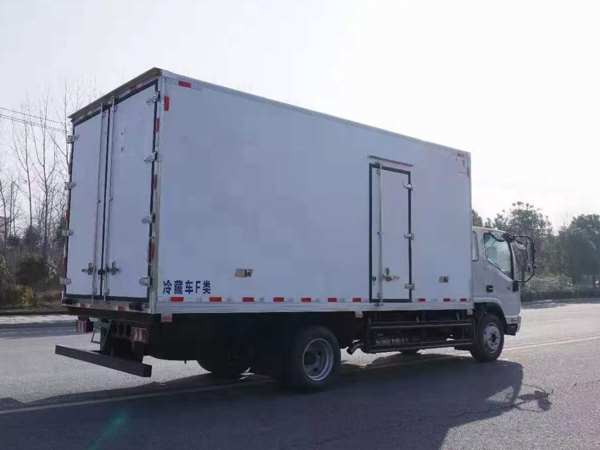 (2)廂板材質(zhì):內(nèi)外壁板選用國內(nèi)優(yōu)質(zhì)玻璃鋼(不吸光、隔熱性好、硬度強、抗氧化);中間保溫層為XPS擠塑聚笨板;廂體厚度8CM。地板采用鋁花紋板,門邊條采用迷宮式橡膠密封條。