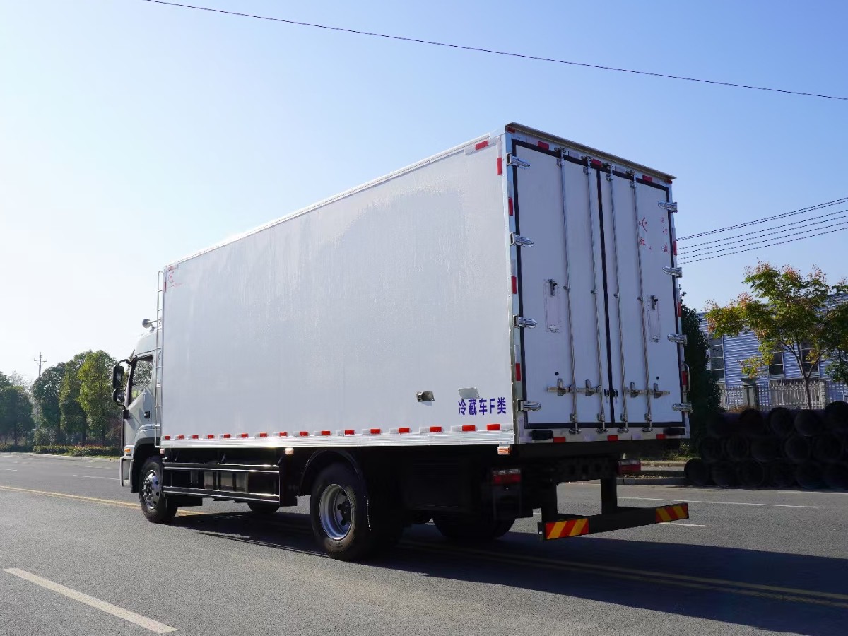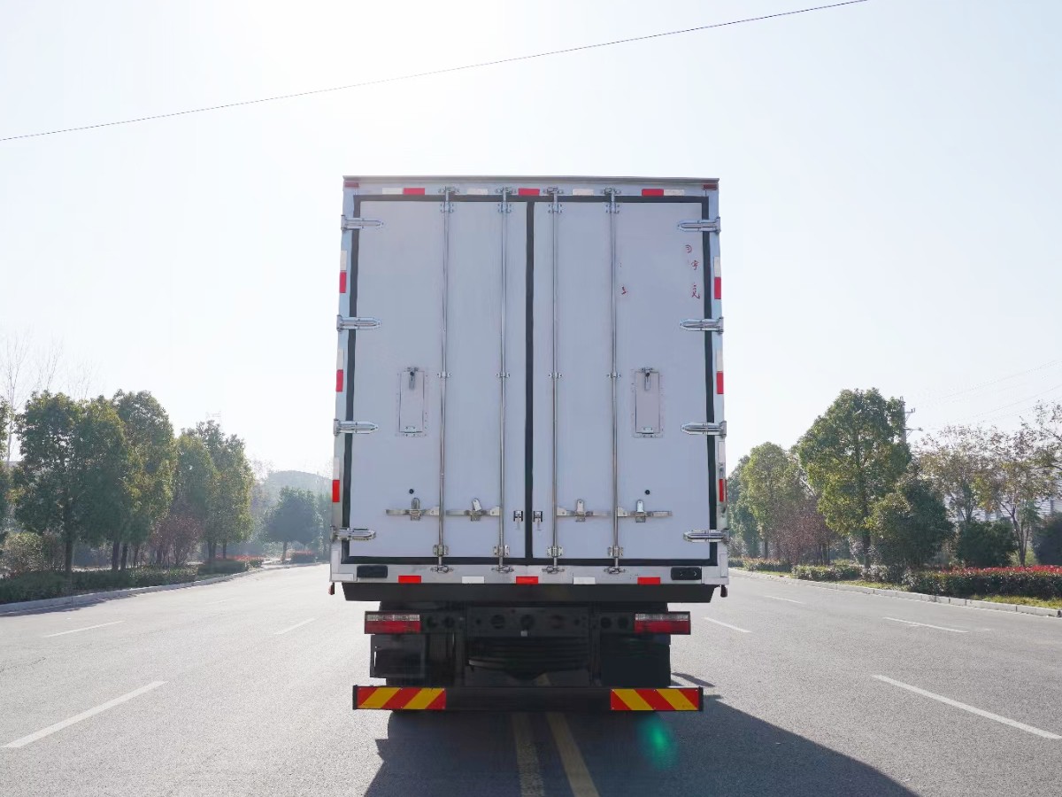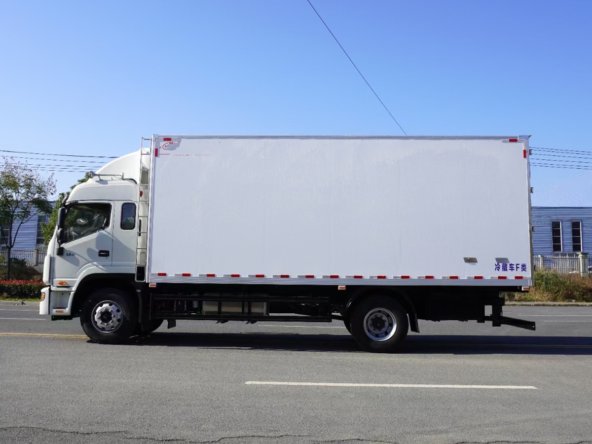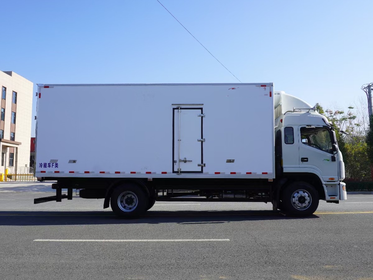 (2)廂板材質(zhì):內(nèi)外壁板選用國內(nèi)優(yōu)質(zhì)玻璃鋼(不吸光、隔熱性好、硬度強(qiáng)、抗氧化);中間保溫層為XPS擠塑聚笨板;廂體厚度8CM。地板采用鋁花紋板,門邊條采用迷宮式橡膠密封條。