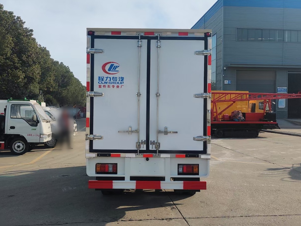 (2)廂板材質(zhì):內(nèi)外壁板選用國內(nèi)優(yōu)質(zhì)玻璃鋼(不吸光、隔熱性好、硬度強、抗氧化);中間保溫層為XPS擠塑聚笨板或聚氨酯;廂體厚度8CM。地板采用鋁花紋板,門邊條采用迷宮式橡膠密封條。
