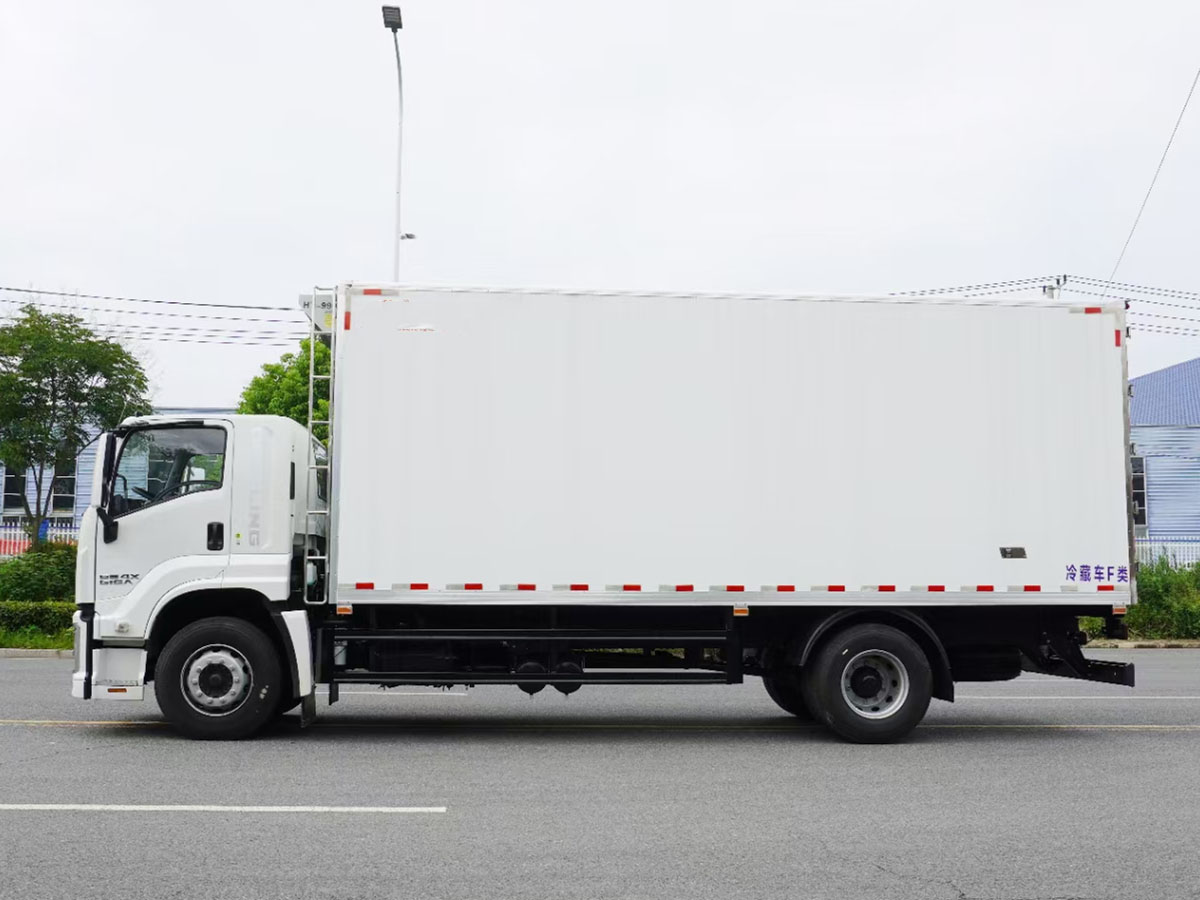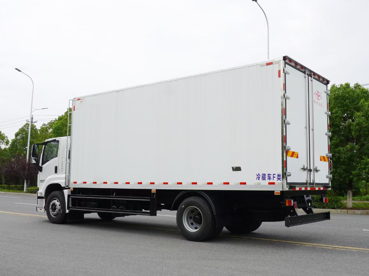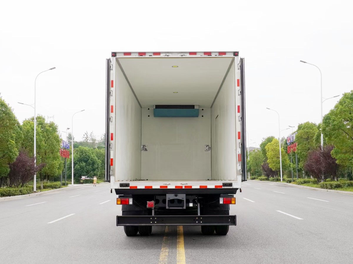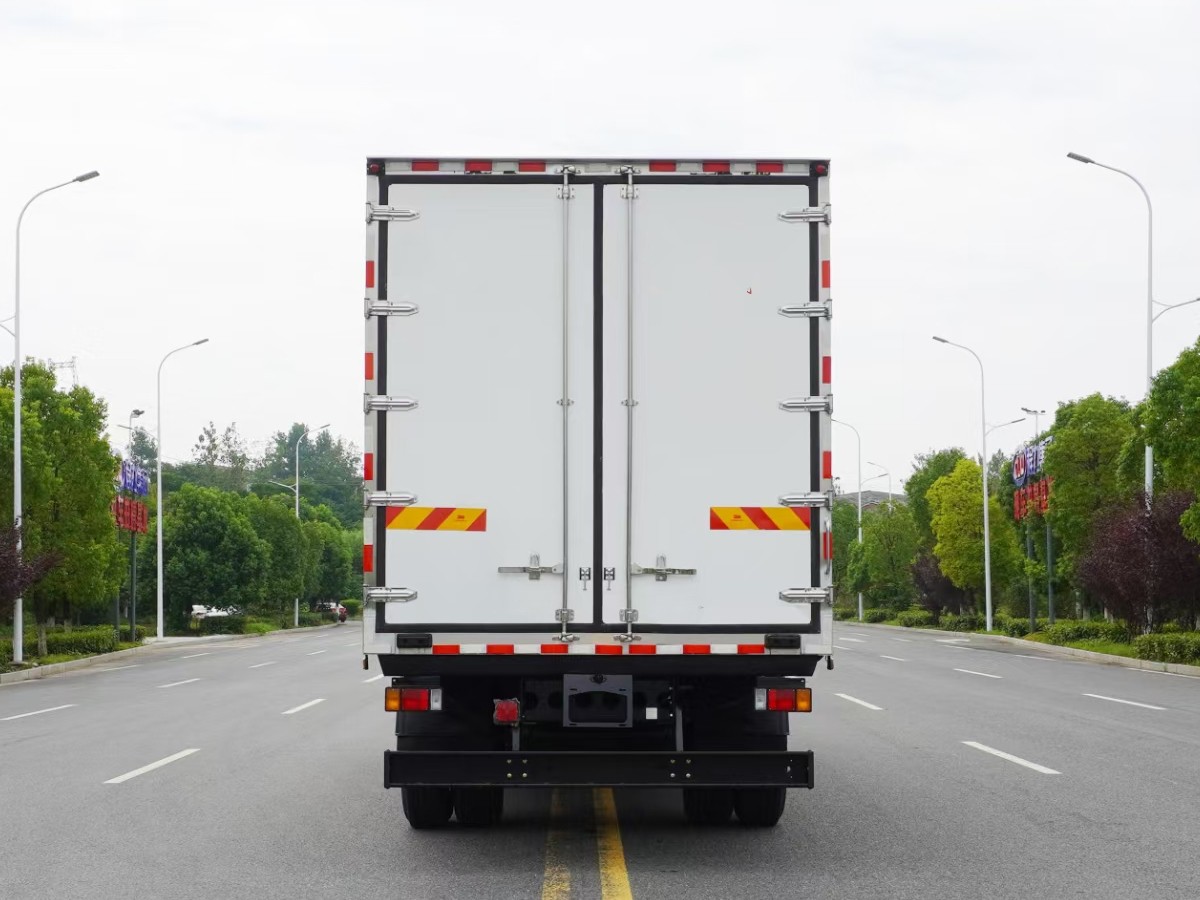(2)廂板材質(zhì):內(nèi)外壁板選用國(guó)內(nèi)優(yōu)質(zhì)玻璃鋼(不吸光、隔熱性好、硬度強(qiáng)、抗氧化);中間保溫層為XPS擠塑聚笨板;廂體厚度8CM。地板采用鋁花紋板,門(mén)邊條采用迷宮式橡膠密封條。