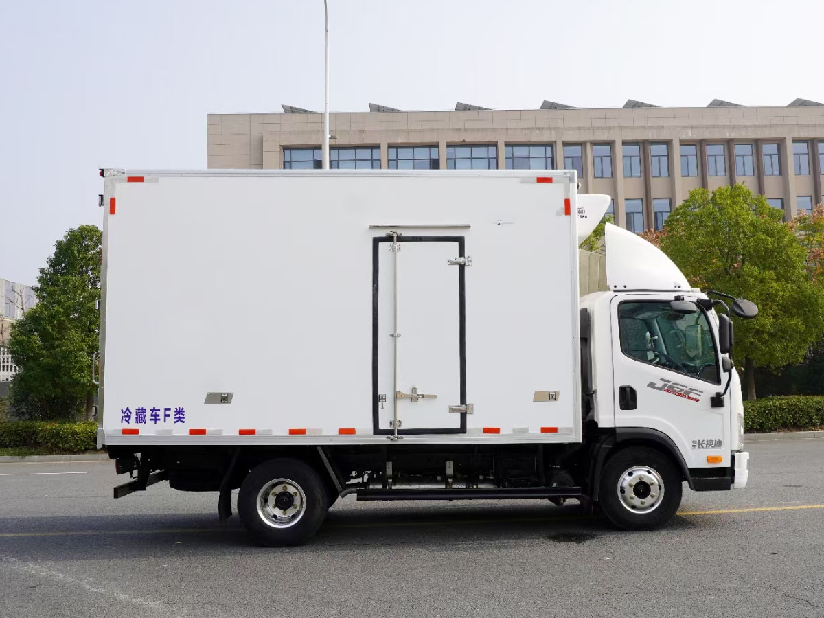 (2)廂板材質(zhì):內(nèi)外壁板選用國內(nèi)優(yōu)質(zhì)玻璃鋼(不吸光、隔熱性好、硬度強、抗氧化);中間保溫層為XPS擠塑聚笨板或聚氨酯;廂體厚度8CM。地板采用鋁花紋板,門邊條采用迷宮式橡膠密封條。