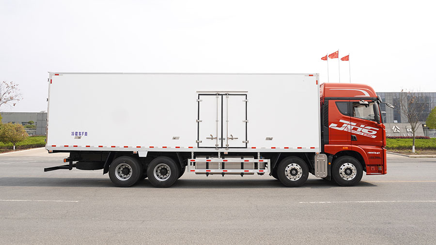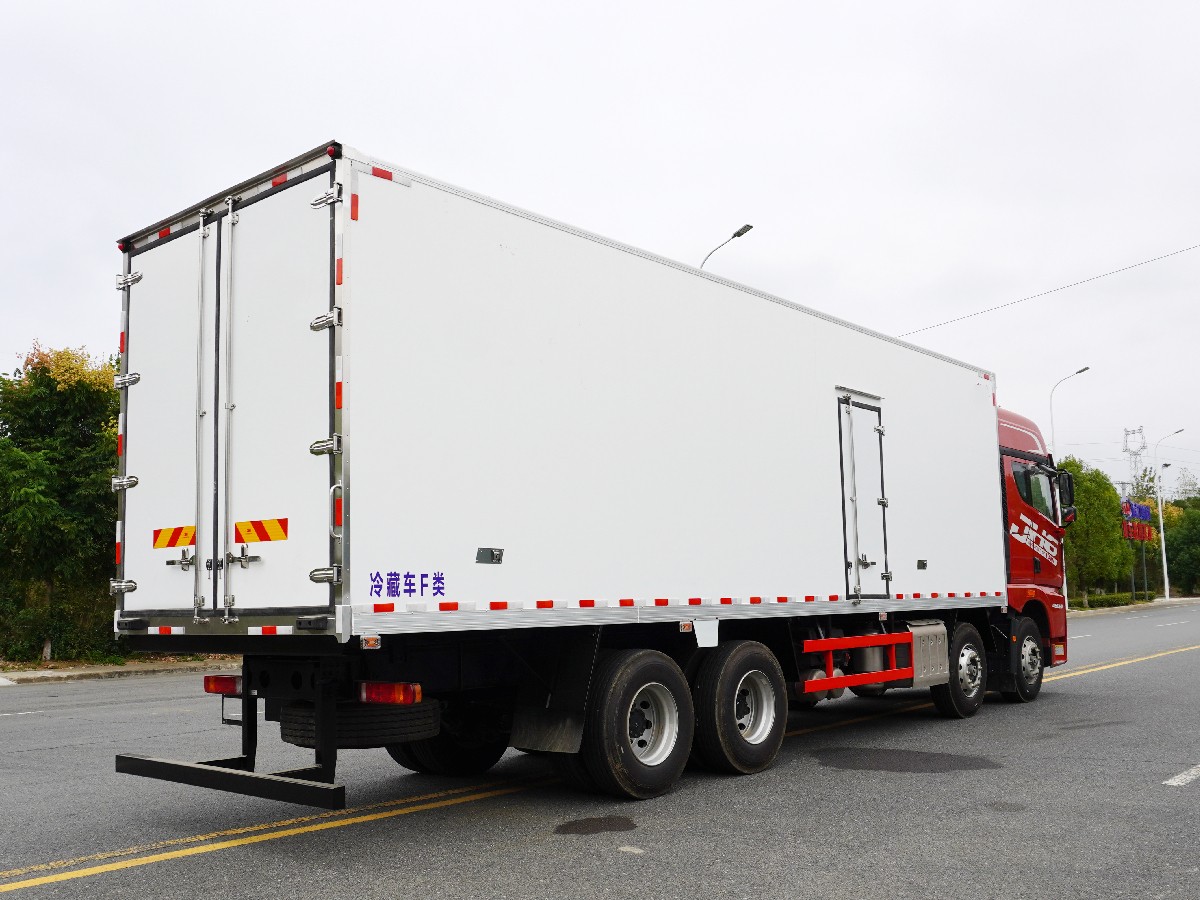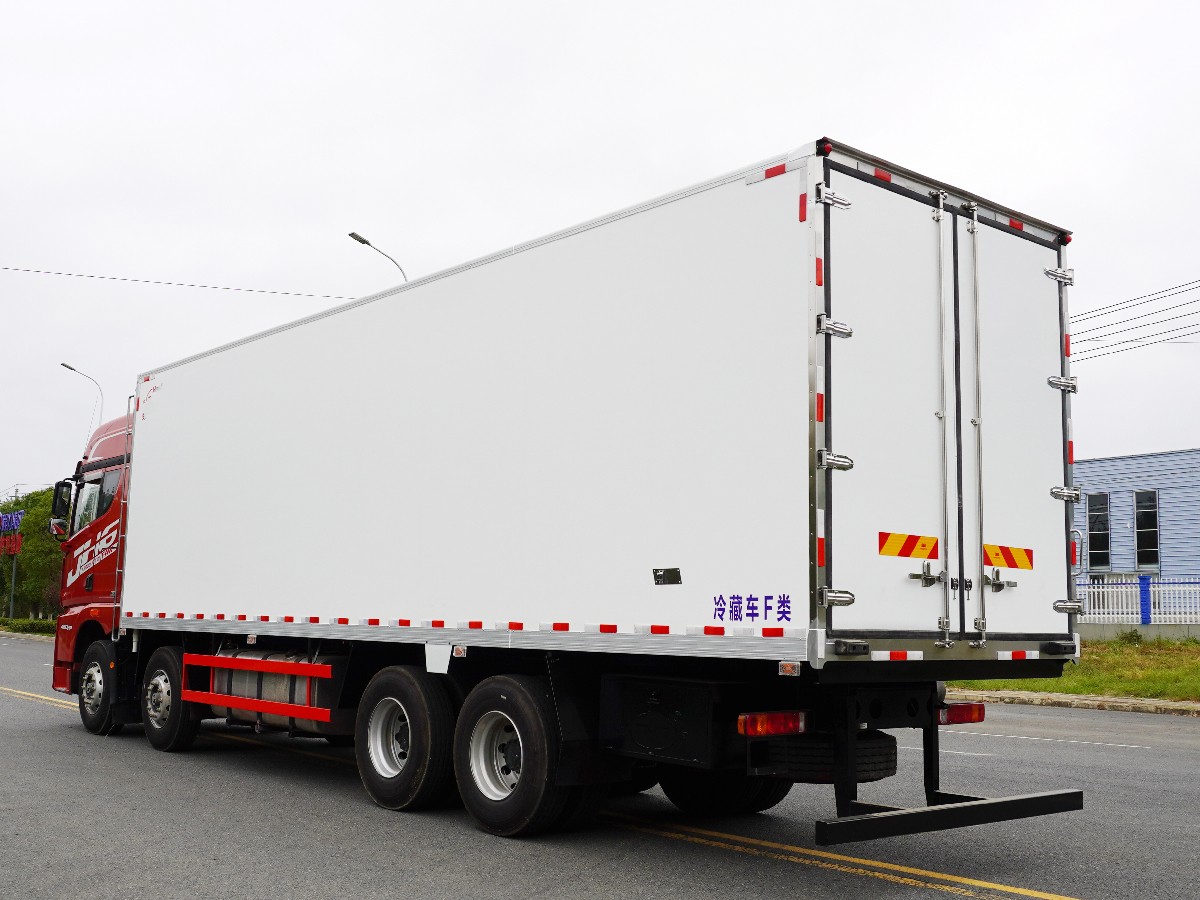 (2)廂板材質(zhì):內(nèi)外壁板選用國(guó)內(nèi)優(yōu)質(zhì)玻璃鋼(不吸光、隔熱性好、硬度強(qiáng)、抗氧化);中間保溫層為XPS擠塑聚笨板;廂體厚度8CM。地板采用鋁花紋板,門(mén)邊條采用迷宮式橡膠密封條。