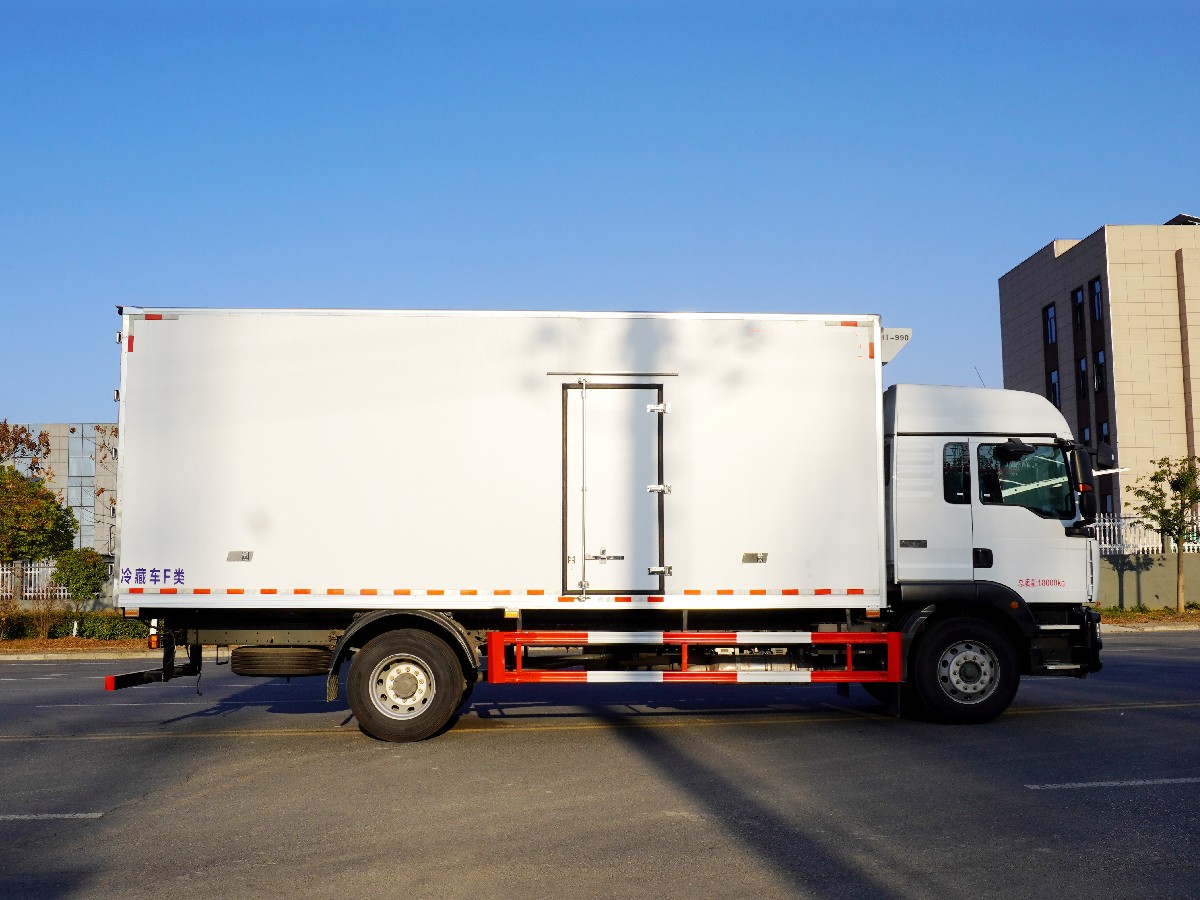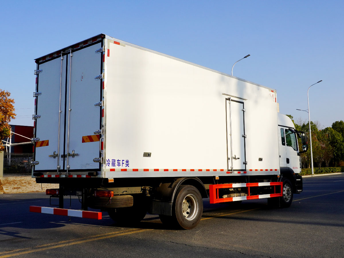 (2)廂板材質(zhì):內(nèi)外壁板選用國內(nèi)優(yōu)質(zhì)玻璃鋼(不吸光、隔熱性好、硬度強(qiáng)、抗氧化);中間保溫層為XPS擠塑聚笨板;廂體厚度8CM。地板采用鋁花紋板,門邊條采用迷宮式橡膠密封條。