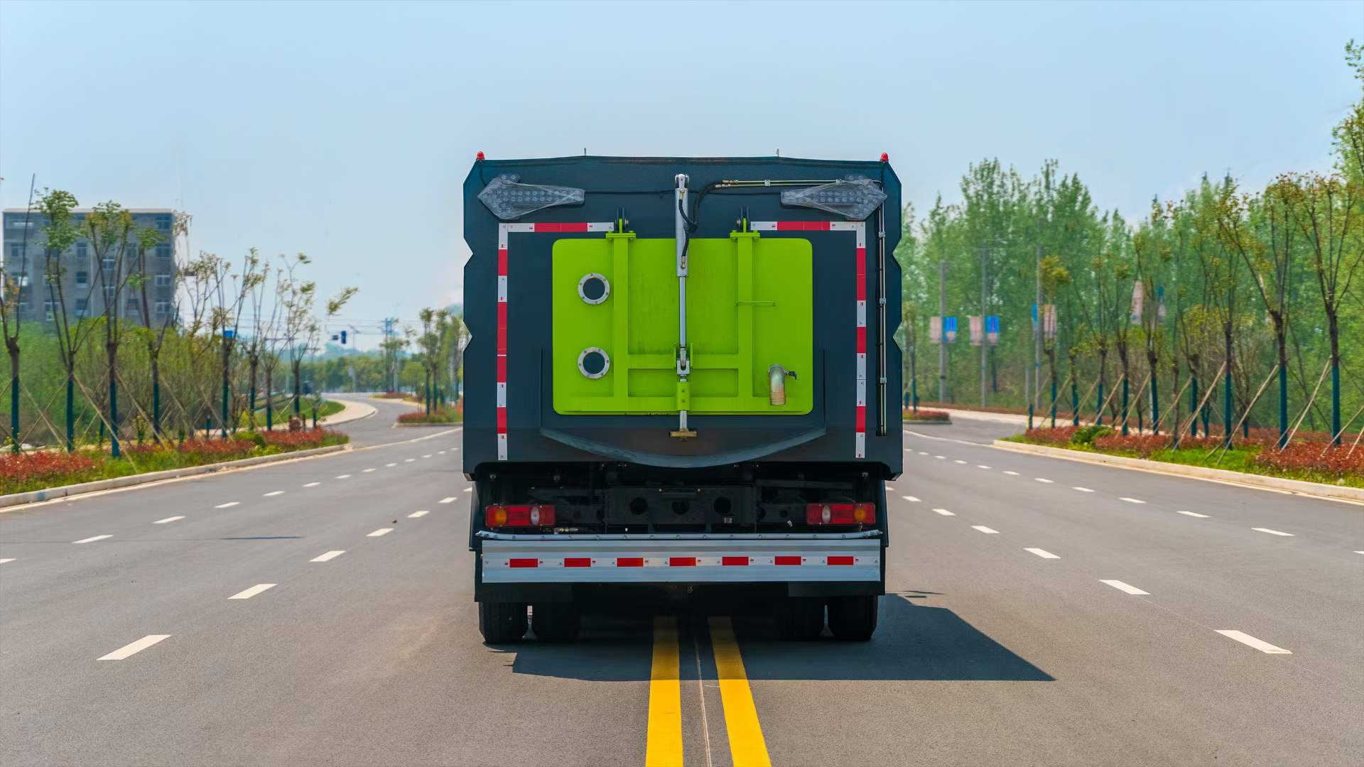 底盤(pán)電池提供動(dòng)力,永磁同步電機(jī)驅(qū)動(dòng),可根據(jù)需要實(shí)時(shí)調(diào)速,取力操作與底盤(pán)行駛系統(tǒng)無(wú)任何關(guān)聯(lián),用車(chē)體驗(yàn)感極佳。中置2掃盤(pán),三洋馬達(dá),GTM高壓水泵,皖液齒輪泵,海普瑞斯液壓油缸,萬(wàn)向高壓路沿清洗,免維護(hù)離心式風(fēng)機(jī),不銹鋼水箱、垃圾箱,不銹鋼高壓管路、施耐德控制開(kāi)關(guān)、美國(guó)傳感器、尾部LED箭頭燈;垃圾箱、水箱均帶防溢或低水位報(bào)警裝置,倒車(chē)及洗掃狀態(tài)室內(nèi)監(jiān)控系統(tǒng),尾部帶電控操作系統(tǒng),15M高壓沖洗卷盤(pán),最大清掃寬度3.5m,高壓沖洗21m。 電氣系統(tǒng)由底盤(pán)車(chē)電路專用工作裝置操作控制電路組成。