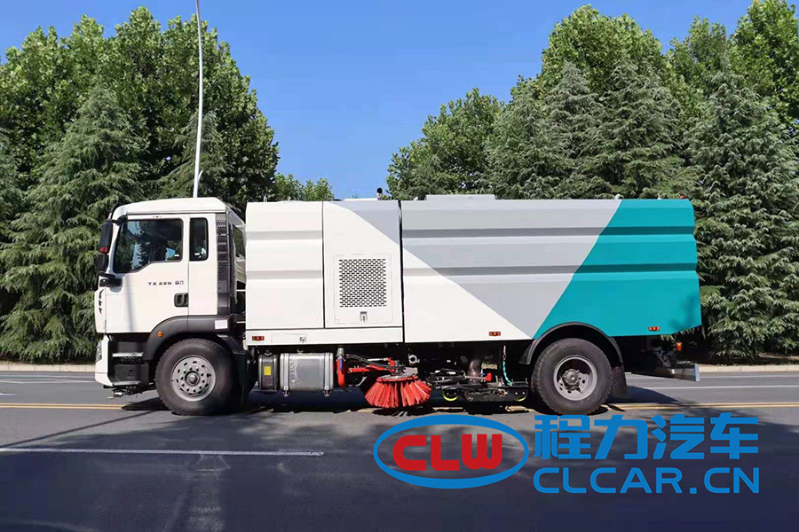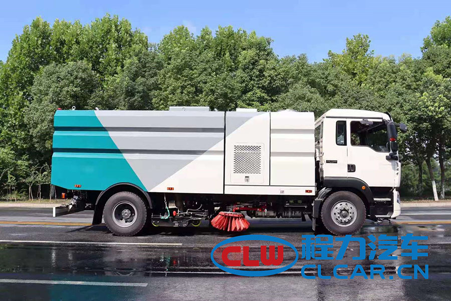 該車是采用重汽豪沃底盤改裝而成,集掃路車、灑水車和高壓清洗車功能于一體,具備路面清掃、路面洗刷、高壓清洗、低壓沖洗、路緣石洗刷、垃圾收集、污水回收、噴霧降塵和道路隔離墻清洗、小廣告清洗等多種作業(yè)功能。具有先進(jìn)的智能化一鍵控制技術(shù),全部作業(yè)均在駕駛室內(nèi)完成,作業(yè)時,只需選定作業(yè)模式后,各作業(yè)機(jī)構(gòu)的啟動與關(guān)停由程序自動控制。有“全洗掃”、“左洗掃”、“右洗掃”、“全掃”、“左掃”和“右掃”、“全洗”、“左洗”和“右洗”9種作業(yè)模式可供選擇。