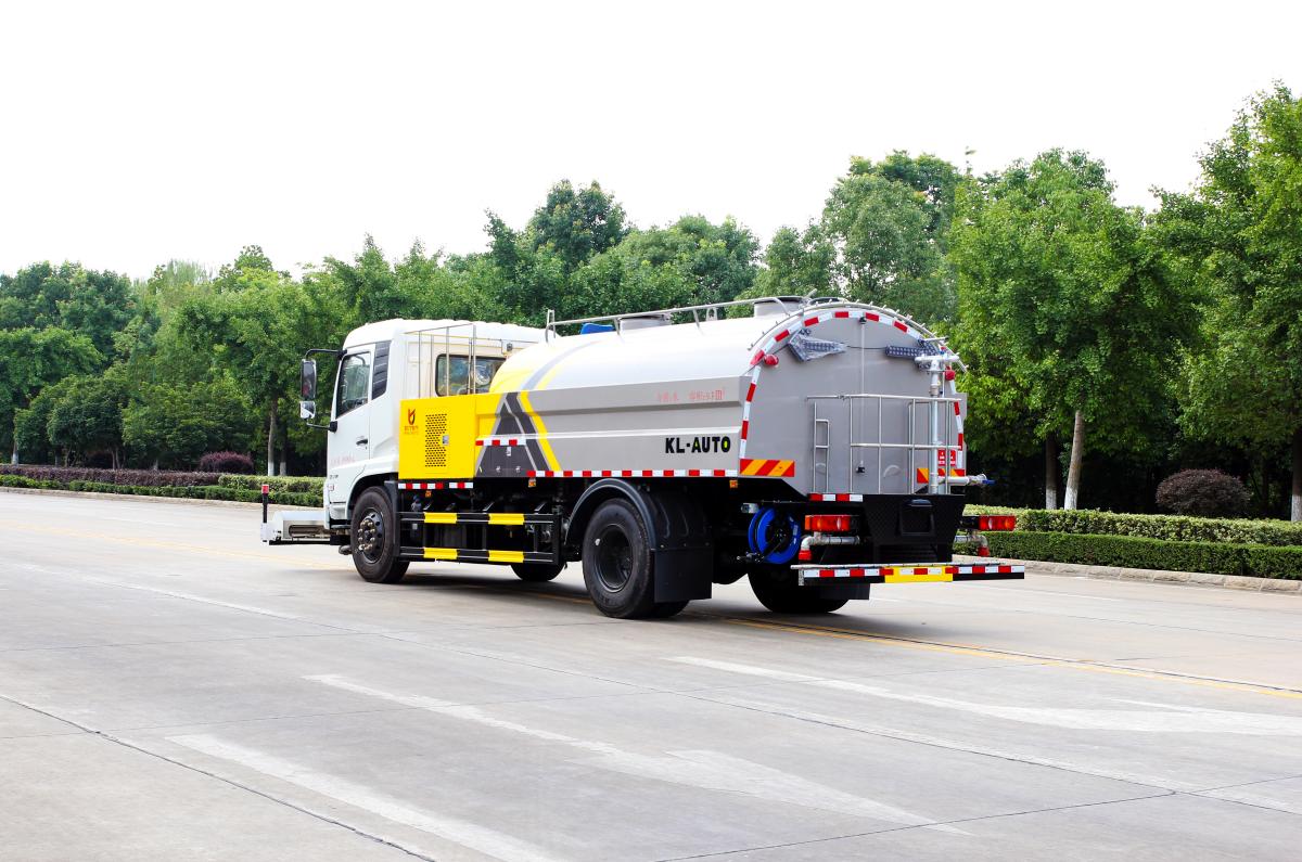 東風(fēng)天錦道路洗掃車具有路面灑水、沖洗、掃路、清洗、降塵等多種功能。同時(shí)配有高壓水槍可 對(duì)道路衛(wèi)生死角、牛皮癬及車輛自身進(jìn)行清潔作業(yè)。
